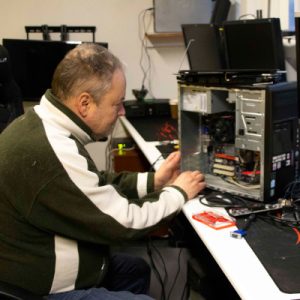Nieuwe vrijwilligers beginnen op de Werkplaats van Login. Daar leren ze via scholing en praktijkervaring alles over het opknappen en repareren van computers & laptops. Ook leren ze op de Werkplaats hoe je met klanten om moet gaan. Als de vrijwilligers er klaar voor zijn en dat ook willen, stromen ze door naar één van de Login winkels wanneer er plaats is.